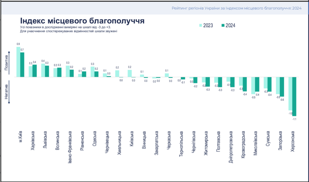 Підсумок: Івано-Франківська область заняла 5-те місце за індексом місцевого благополуччя з результатом 0,21, але показники економічних можливостей і емоційного сприйняття знизилися, що вказує на необхідність вжиття заходів для покращення якості життя регіону.